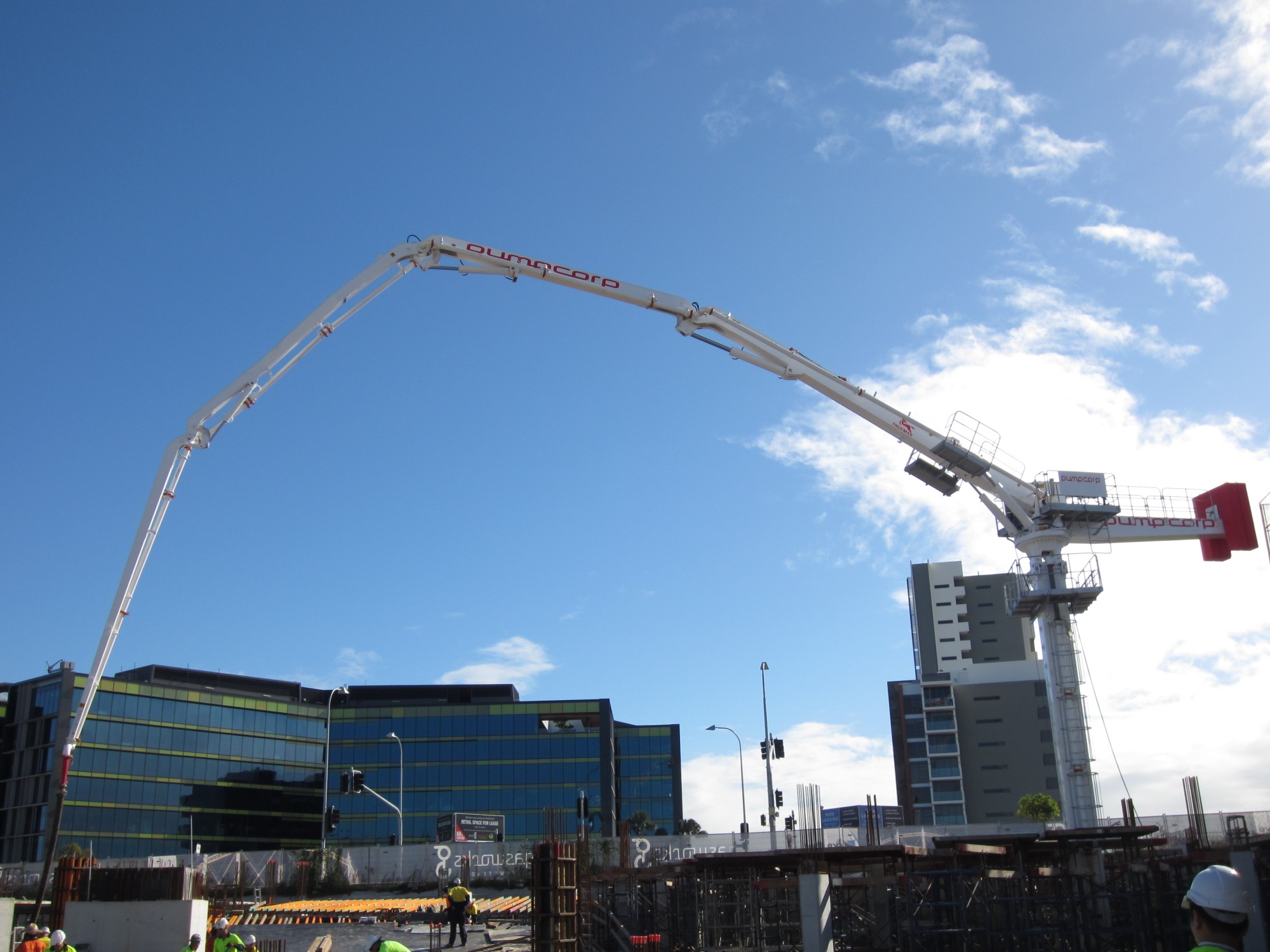 38米塔式自動布料機利用塔機的標準節(jié)進行安裝爬升,全自動混凝土布料,360度液壓齒輪旋轉(zhuǎn),遠程無線遙控進行操作,2人即可混凝土布料,節(jié)省人力,提高混凝土布料效率,施工無冷縫。